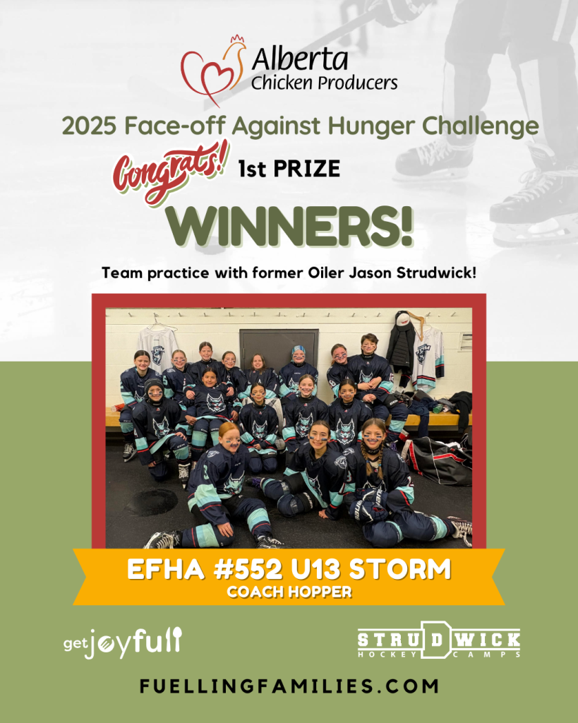 The “Face-off Against Hunger Challenge” is now closed! We challenged minor hockey teams to help fuel families in need by making a team food bank donation. Thank you for participating!